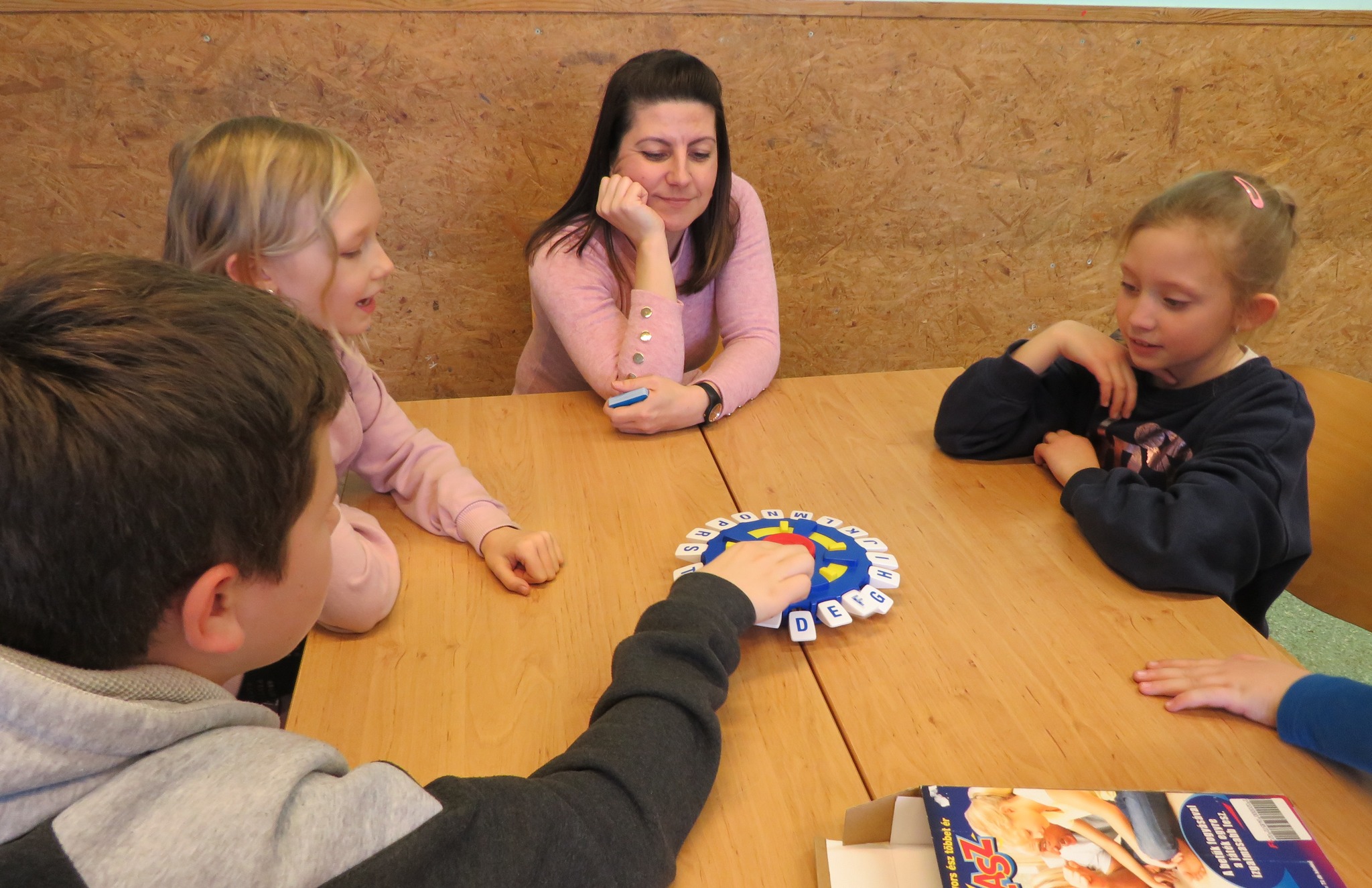 A negyedik „Puzzle” állomáson a kicsik kevesebb, a nagyok több darabból álló képet raktak össze, melyen az ige történése volt ábrázolva.