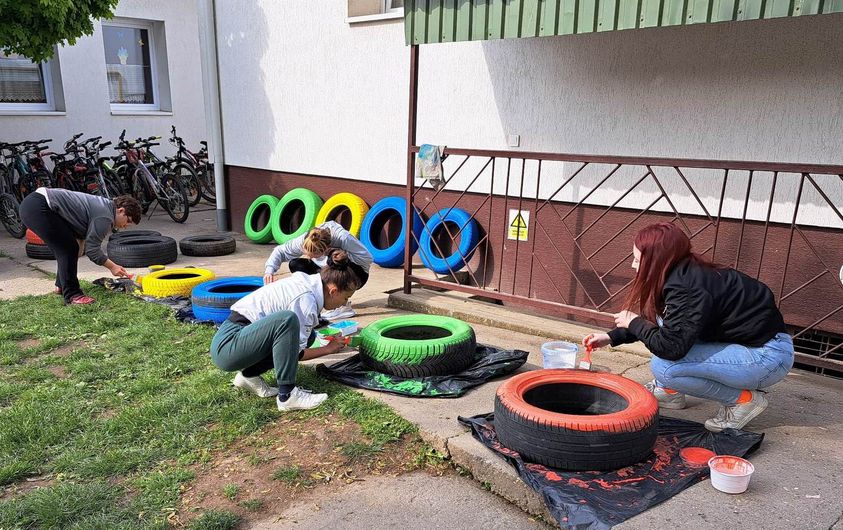 Két pedagógus és apukák munkáját követően megszépült az iskola udvara. Három apuka – Mészáros József, Vajda András és Vajda Péter – raklapokból készített virágtartókat és egy homokozót. A pedagógusok pedig virágokat ültettek a tartókba.