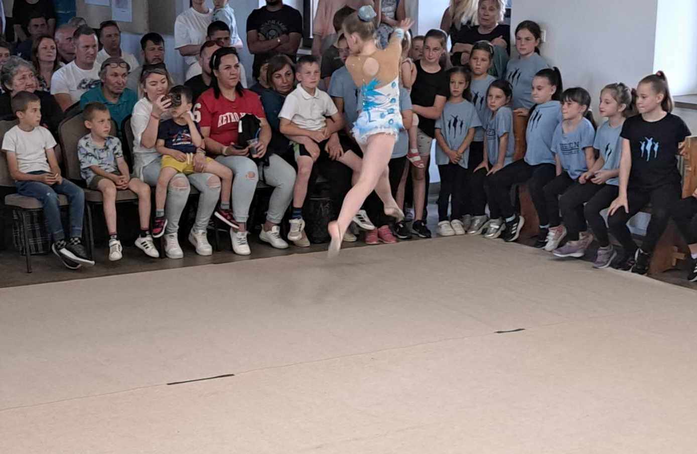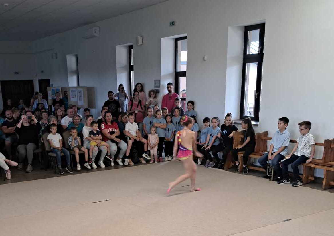 Műsorunkat ritmikus sportgimnasztikával folytattuk. Az alsó tagozatos lányok közül öten űzik ezt a sportágat a tolnai Vitál Sport és Szabadidő Egyesületben. Szép eredményekkel büszkélkedhetnek. Arany, ezüst, bronz minősítéseket szereznek a versenyeken egyéniben és párosban is. Lampert Liza, Vajda Panna, Kákonyi Lara, Gyalog Anna, és Dávid Natasa kecses mozgásában gyönyörködhettünk.