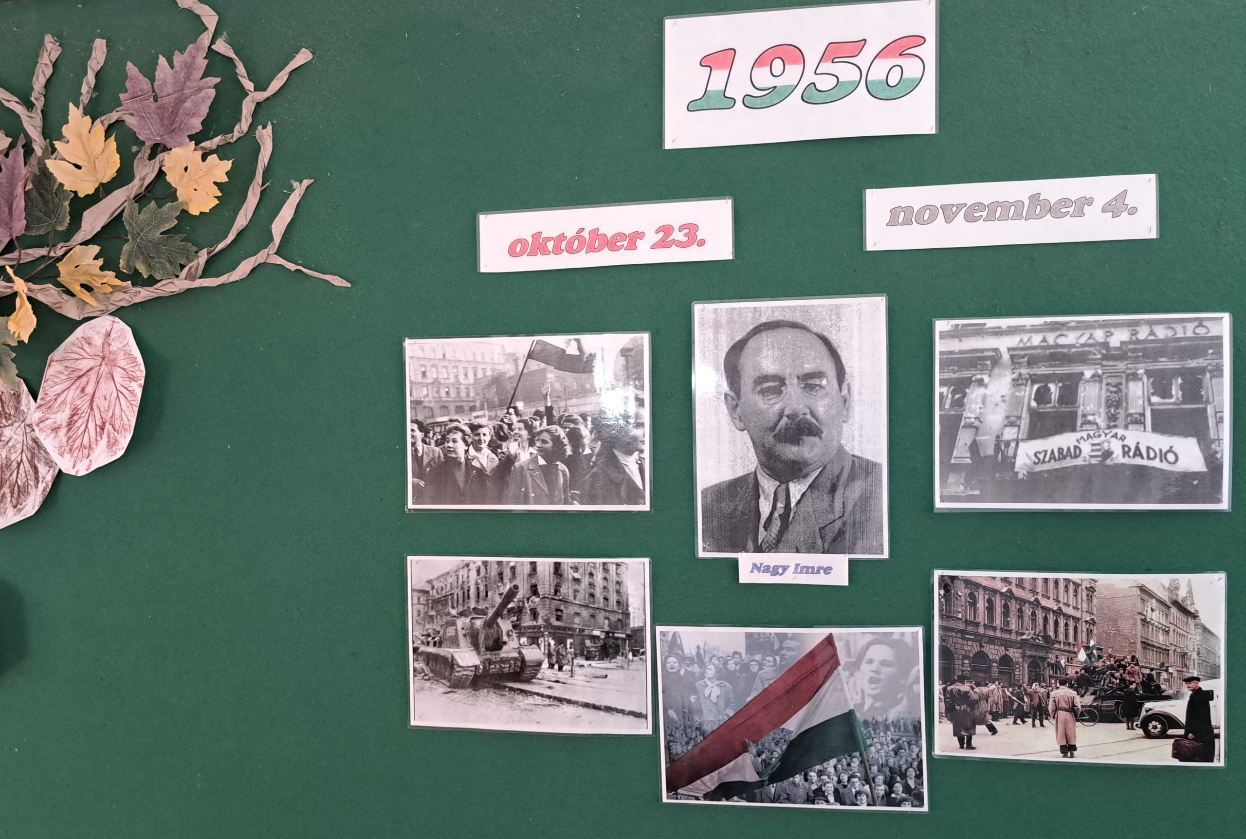 Az 1956. októberének eseményeit elevenítették fel iskolánk ötödik osztályos tanulói, osztályfőnökük, Imre Anita tanárnő vezetésével, Csonnó Roland iskolalelkész közreműködésével. A történet szerint a forradalom egykori ifjú résztvevői, mai nagyszülők elevenítették fel az ’56-os ősz eseményeit unokáiknak. A nézők számára korabeli képek vetítése tette átélhetőbbé a történelmi eseményt.